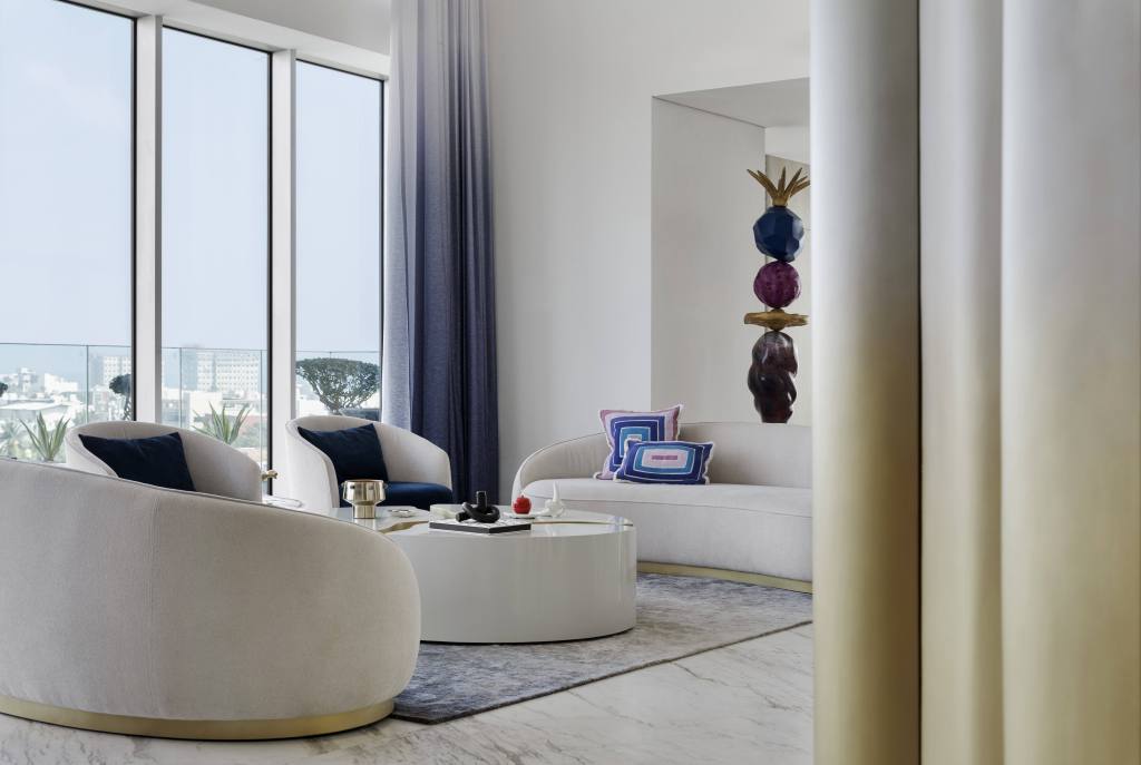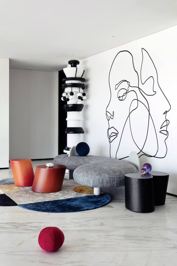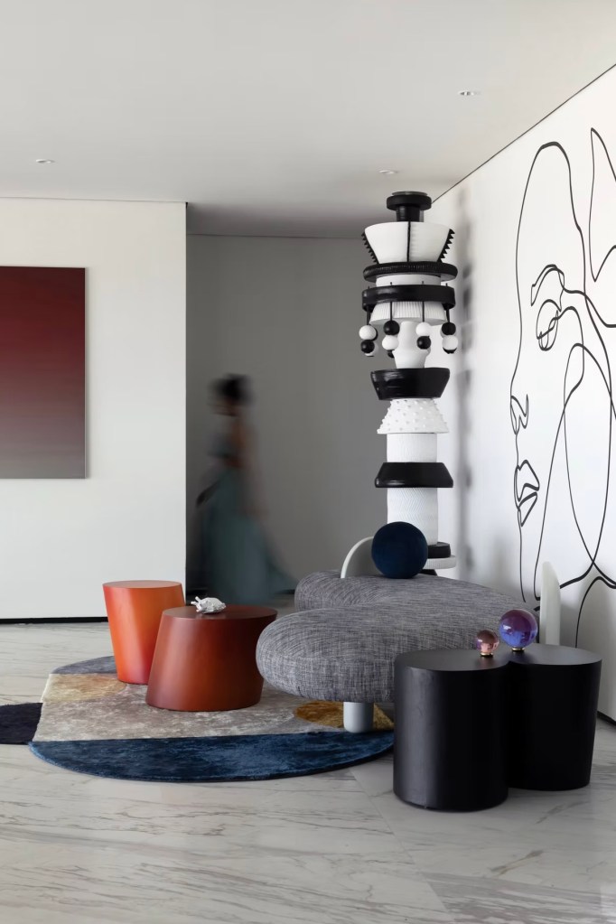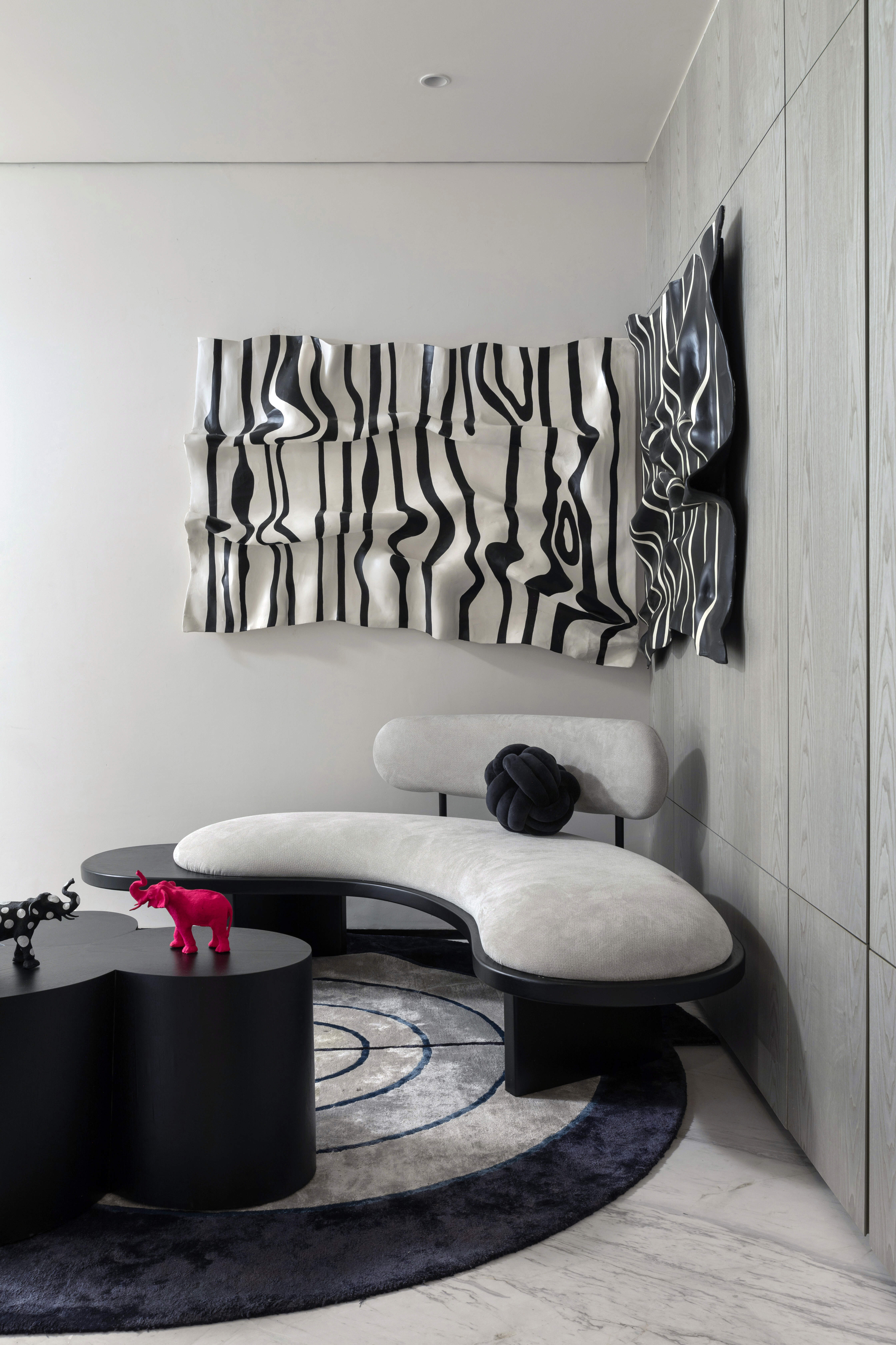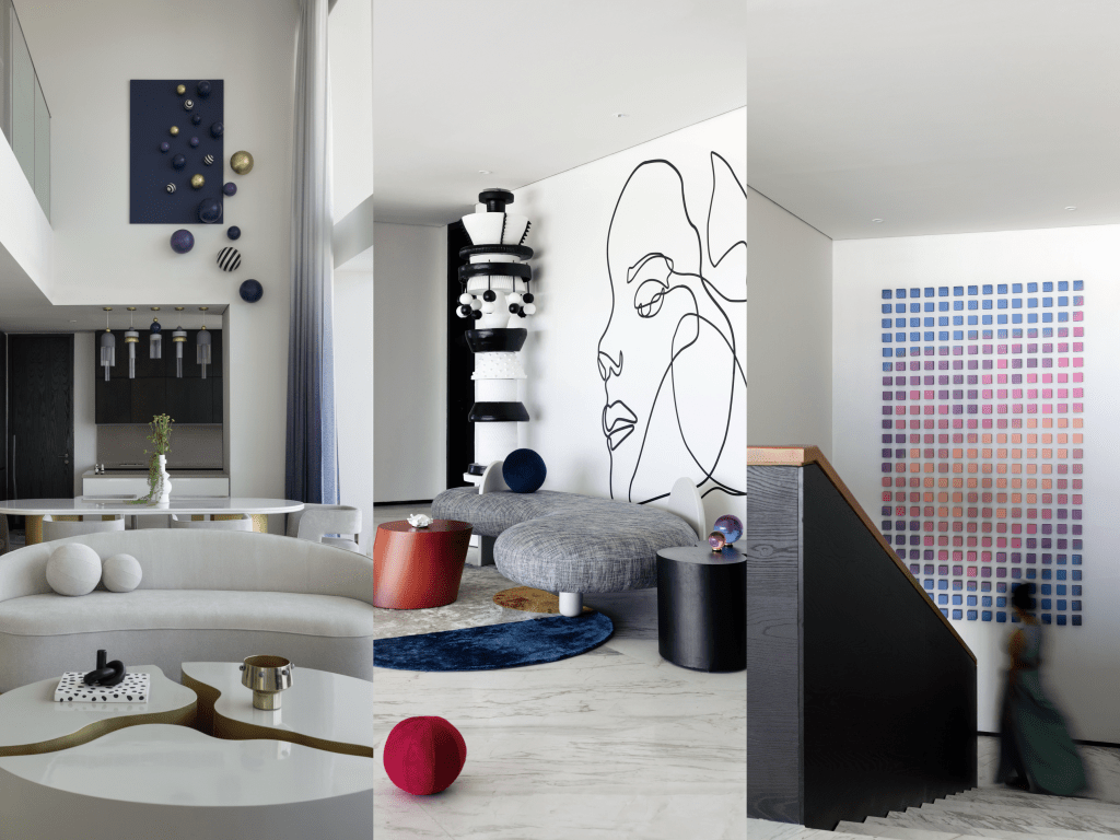 The result is a space where colors don’t compete, but rather, intermingled with each other, they form a seamless whole—an elegant backdrop for the art and decor that punctuate the interiors. The challenge was to create a home that not only reflected the client’s quirky, artistic personality but also served as a safe, functional haven for their twin baby girls, barely two years old. The design ensures that while the spaces remain open and uncluttered, they retain a sense of warmth and character.