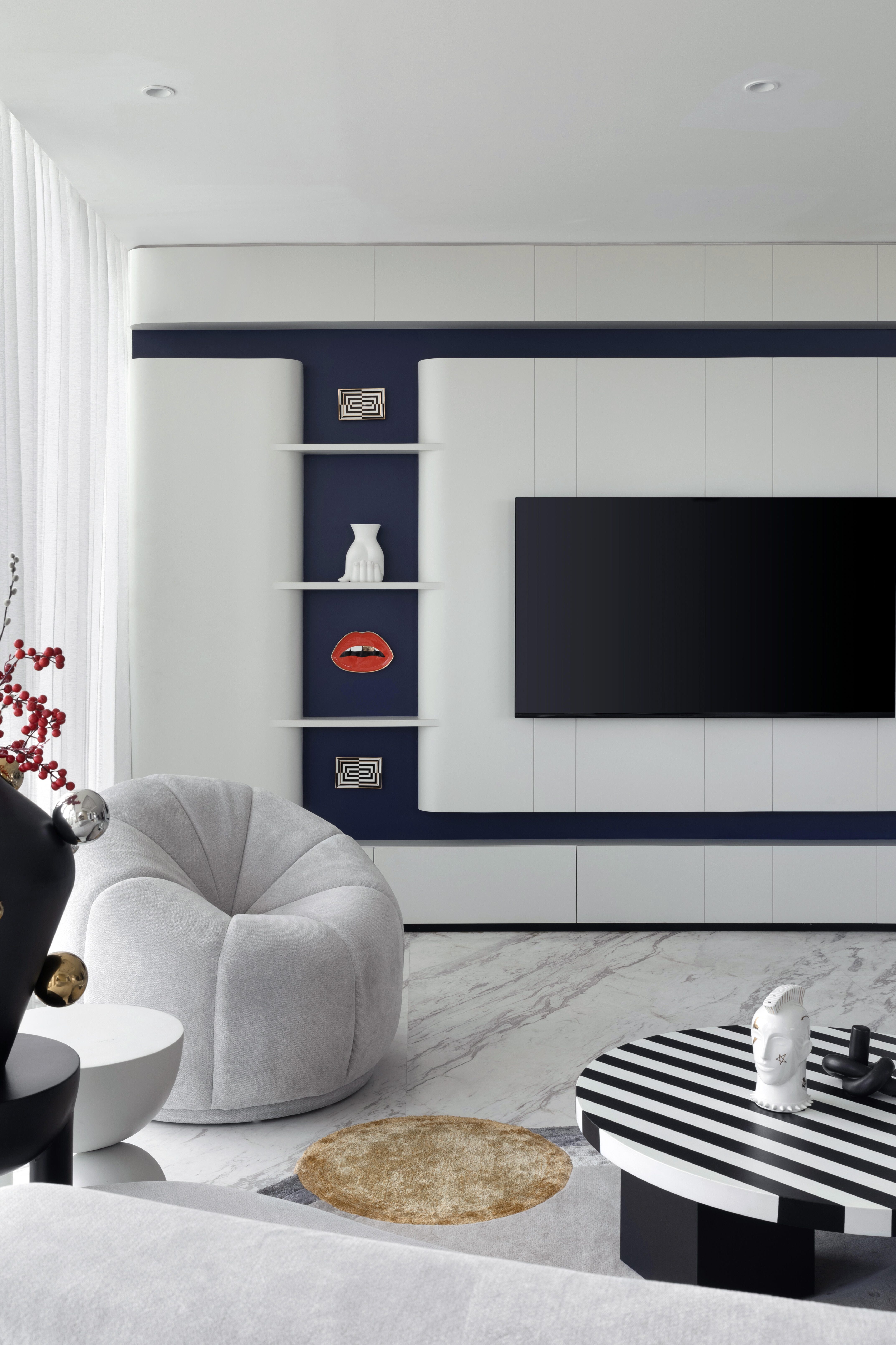 The color palette is key here: muted whites and neutrals stretch across walls and floors, while carefully chosen artworks and accents introduce bursts of personality. These colors, though subtle in tone, converse with each other—soft beige next to chalky whites, and the occasional pop of color from curated artworks and decor pieces, creating a visual rhythm that feels alive without disrupting the calm.